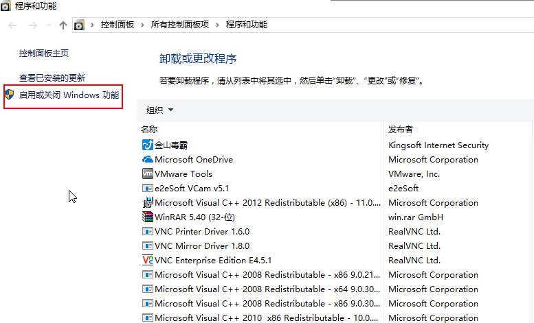 4. 点击【启用或关闭Windows功能】